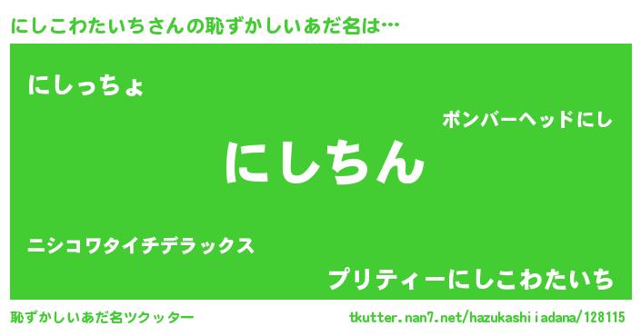 | 意味不明あだ名 | 『永久保存にしこわたいち』 |