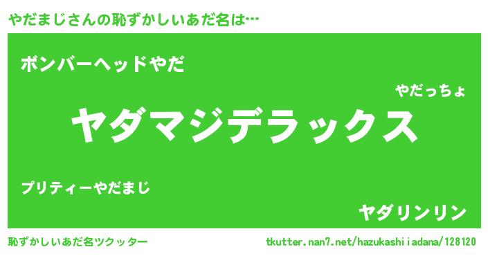 | ヒーロー風カッコイイあだ名 | 『超時空戦士ヤダマジ』『仮面ヤダダー』 |