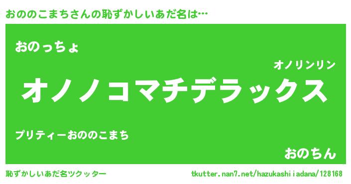 | ヒーロー風カッコイイあだ名 | 『最強戦士オノノコマチ』『仮面オノダー』 |