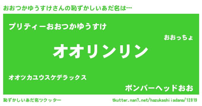 | 男性向けラノベタイトル風あだ名 | 『おおつかゆうすけの嫁は女の子じゃないと思った?』 |