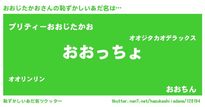 | 欧米人風あだ名 | 『おおじたかおクリステル』 |