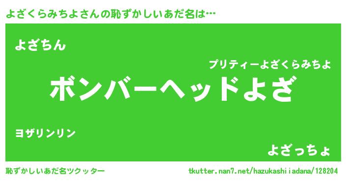| ヘコむあだ名 | 『よざくらみちよ(遠い目)』『酢こんぶ』 |