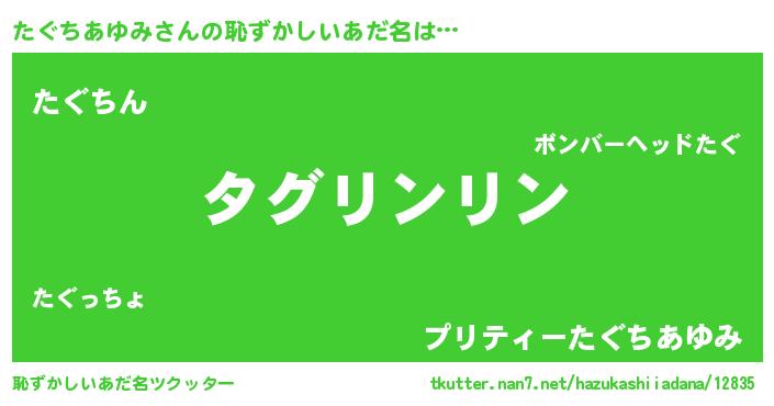 | 意味不明あだ名 | 『とにかく怪しいたぐちあゆみ』 |