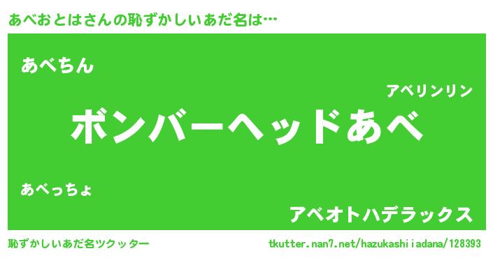 | ヒーロー風カッコイイあだ名 | 『仮面アベダー』『天空の使者あべおとは』 |
