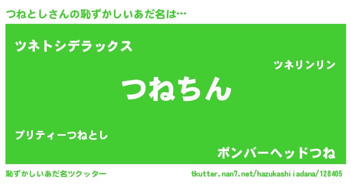 | 男性向けラノベタイトル風あだ名 | 『ツネトシスレイヤー』 |