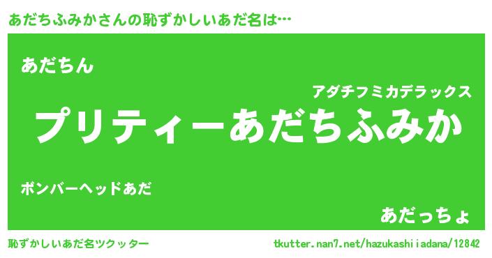 | ヘコむあだ名 | 『あだにー』『あだちふみか(笑)』 |