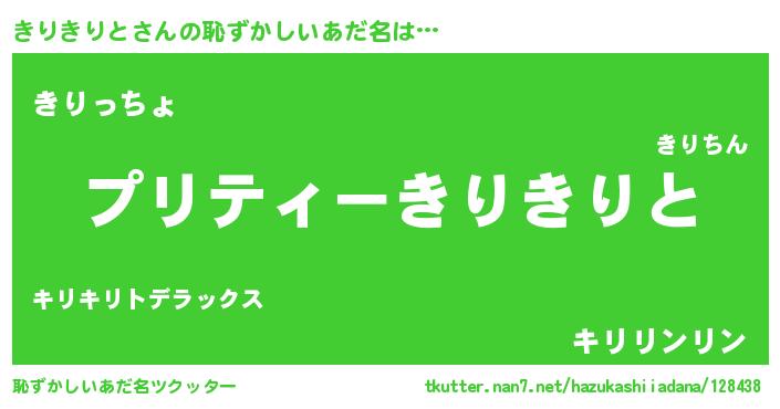 | ヒーロー風カッコイイあだ名 | 『スーパーキリキリト』『仮面キリダー』 |