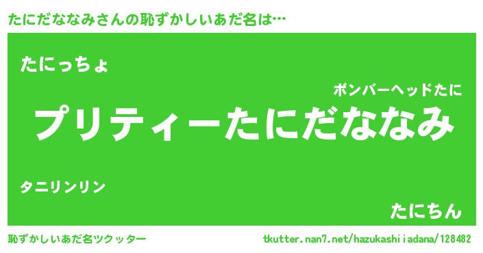 | 意味不明あだ名 | 『住所不定無職たにだななみ(11歳)』 |