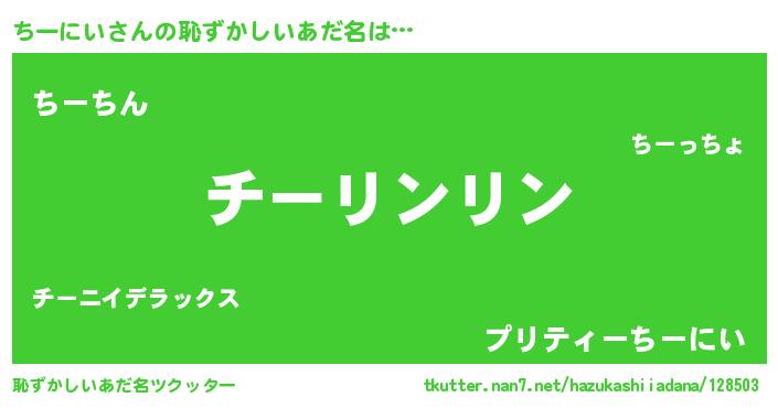 | 女子向けラノベタイトル風あだ名 | 『ちーにい様がみてる』 |