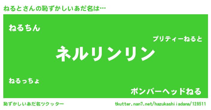 | 男性向けラノベタイトル風あだ名 | 『ねると~年齢イコール彼女いない歴の魔法使い~』 |