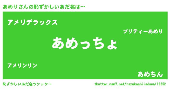 | ヘコむあだ名 | 『豆乳』『あめり(爆)』『あめもー』 |