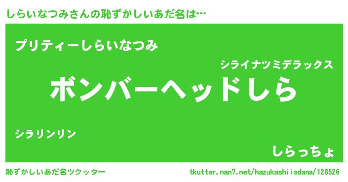 | 意味不明あだ名 | 『眠気覚ましガムしらいなつみ味』 |