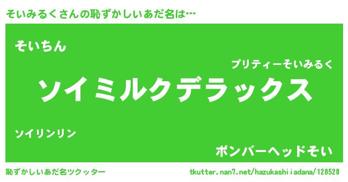 | 意味不明あだ名 | 『自称そいみるく』『永久保存そいみるく』 |