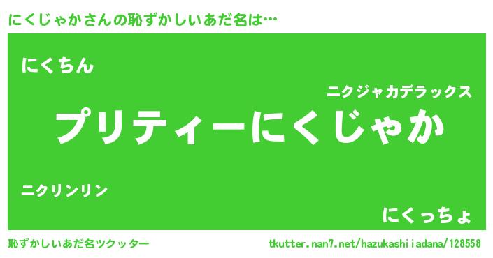 | 男性向けラノベタイトル風あだ名 | 『転生したらにくじゃかだった件』 |