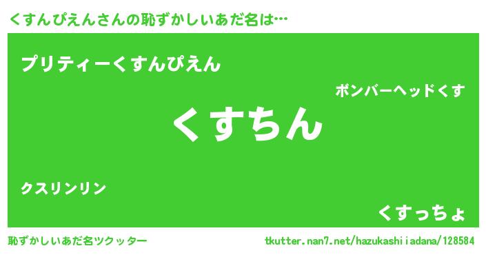 | ヘコむあだ名 | 『くすんぴえん(遠い目)』『くすっふぃ~』 |
