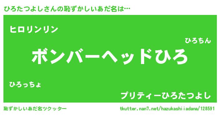 | 男性向けラノベタイトル風あだ名 | 『おまえをオタクにしてやるから、俺をひろたつよしにしてくれ! 』 |