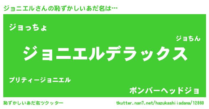 | 意味不明あだ名 | 『自称ジョニエル』『永久保存ジョニエル』 |
