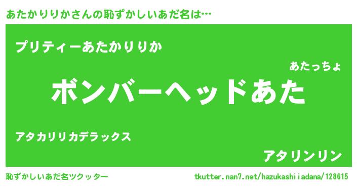 | 欧米人風あだ名 | 『あたかりりか・ステッグマイヤー』 |