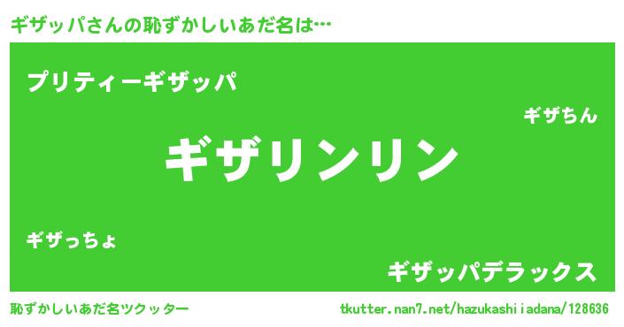 | 男性向けラノベタイトル風あだ名 | 『ダンジョンにギザッパを求めるのは間違っているだろうか』 |