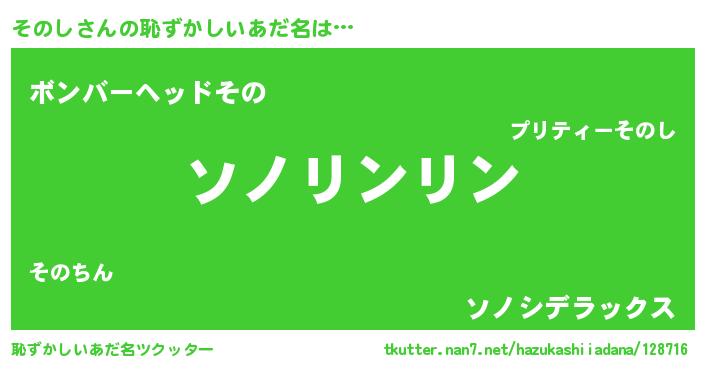| 男性向けラノベタイトル風あだ名 | 『緋弾のソノシ』『ソノシスレイヤー』 |
