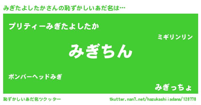 | ヘコむあだ名 | 『みぎたよしたか(爆)』『みぎにー』 |