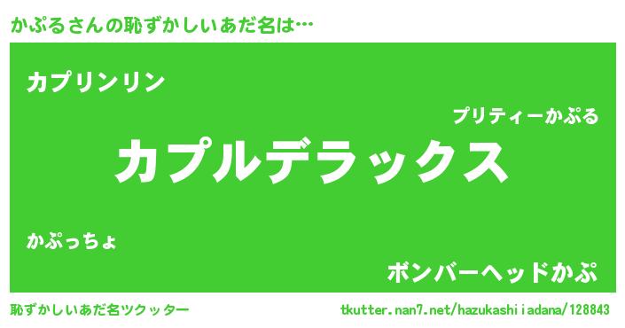 | 意味不明あだ名 | 『自称かぷる』『とにかく怪しいかぷる』 |