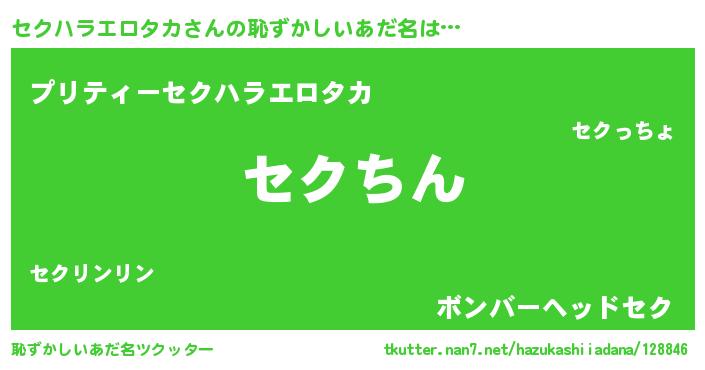 | ヘコむあだ名 | 『セクハラエロタカ(笑)』『セクにゅー』 |