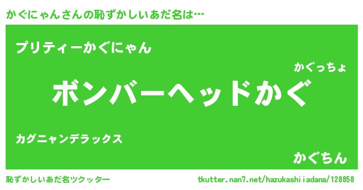| ヒーロー風カッコイイあだ名 | 『愛の使者かぐにゃん』『仮面カグダー』 |