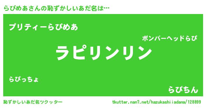 | ヘコむあだ名 | 『らぴっ子』『らぴふぇ~』『つくし』 |