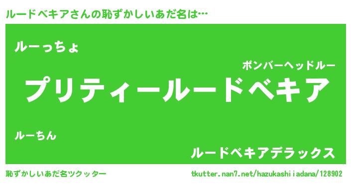 | 女子向けラノベタイトル風あだ名 | 『乙女ゲームの破滅フラグしかない悪役ルードべキアに転生してしまった…』 |