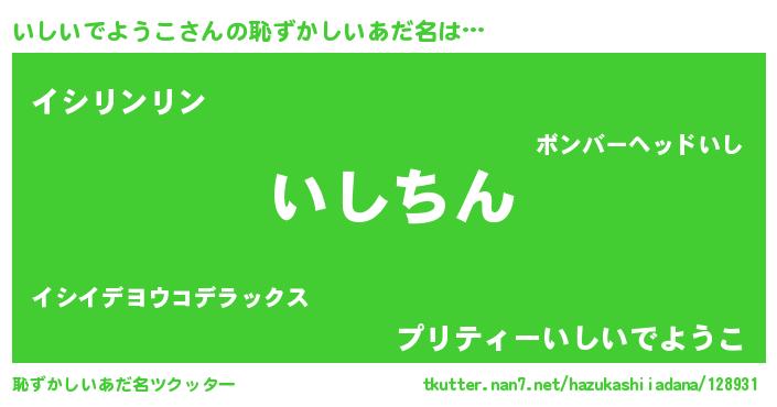 | ヘコむあだ名 | 『いしいでようこ(苦笑)』『いし太郎』 |