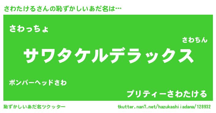 | ヒーロー風カッコイイあだ名 | 『サイバー戦士サワタケル』 |