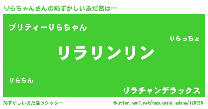 | 可愛いあだ名 | 『りらぷりん』『りっらぃー』 |