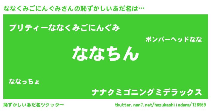 | ポケモン風あだ名 | 『ゼニナナ』『ナナチュウ』 |