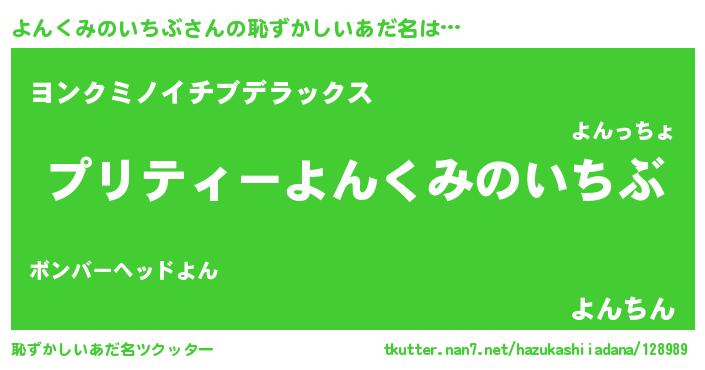 | ヒーロー風カッコイイあだ名 | 『スーパーヨンクミノイチブ』 |