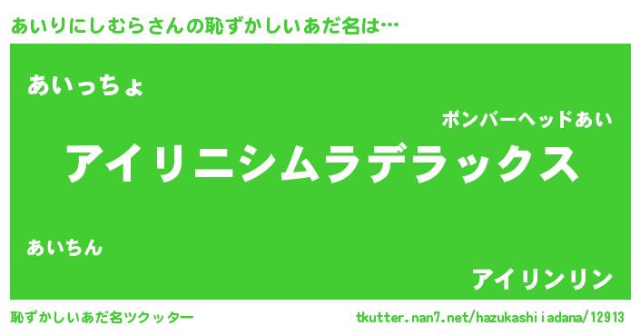 | 意味不明あだ名 | 『自称あいりにしむら』 |