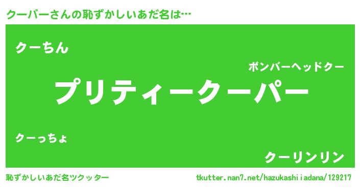 | 意味不明あだ名 | 『ペロリンクーパー』『永久保存クーパー』 |