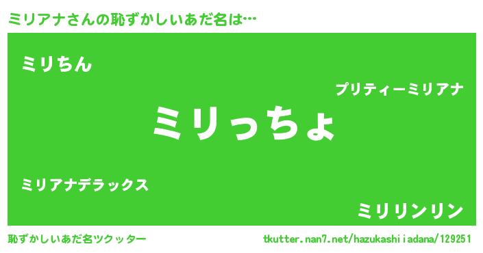| 意味不明あだ名 | 『ミリアナフォーエバー』 |