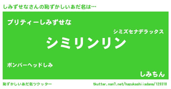 | 男性向けラノベタイトル風あだ名 | 『しみずせなの嫁は女の子じゃないと思った?』 |