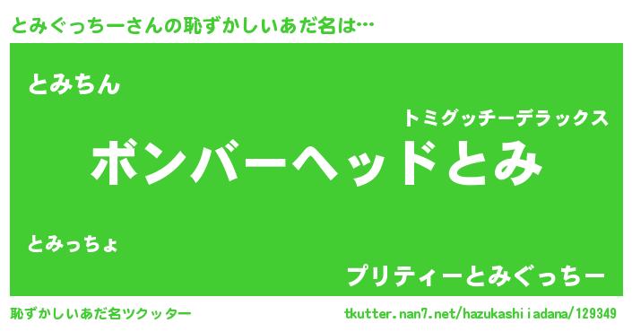 | 男性向けラノベタイトル風あだ名 | 『おまえをオタクにしてやるから、俺をとみぐっちーにしてくれ! 』 |