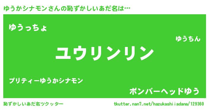 | 意味不明あだ名 | 『住所不定無職ゆうかシナモン(93歳)』 |
