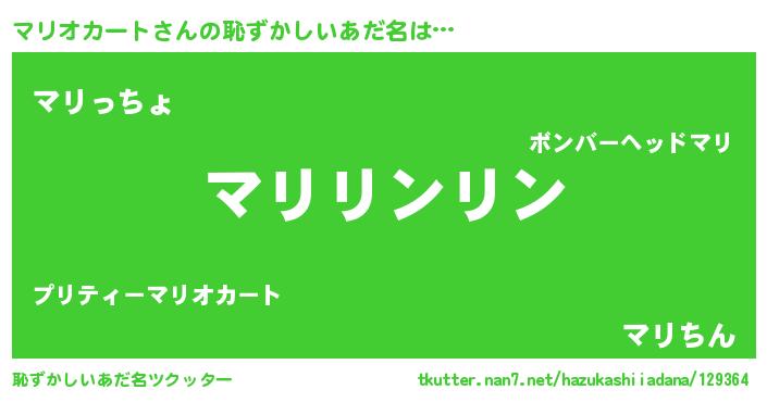 | 女子向けラノベタイトル風あだ名 | 『乙女ゲームの破滅フラグしかない悪役マリオカートに転生してしまった…』 |