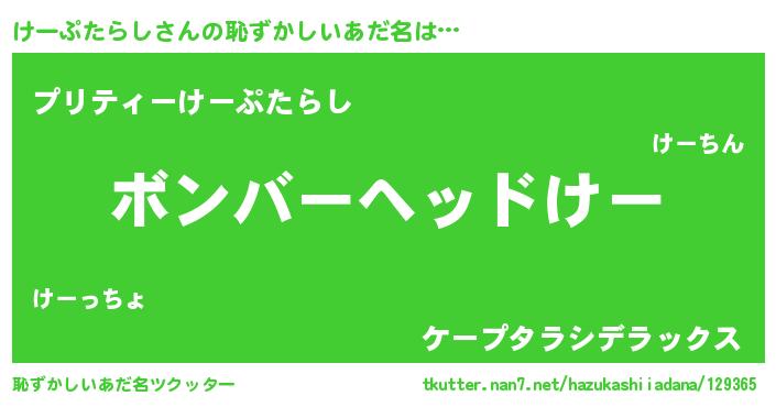 | ヘコむあだ名 | 『けーにー』『けーぷたらし(笑)』 |