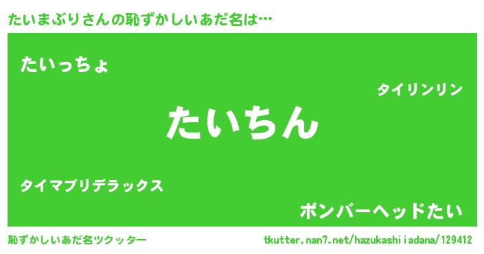 | ヘコむあだ名 | 『たいまぶり(笑)』『豆乳』 |