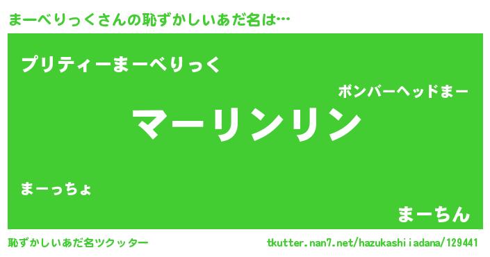 | 意味不明あだ名 | 『とにかく怪しいまーべりっく』 |