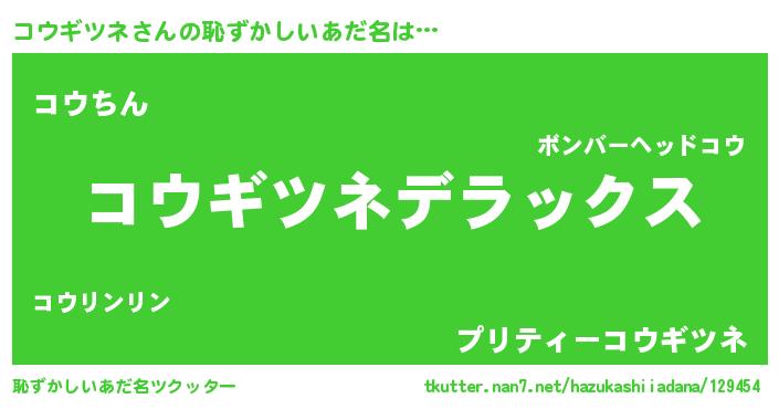 | ヒーロー風カッコイイあだ名 | 『最強戦士コウギツネ』『ネオコウギツネ』 |