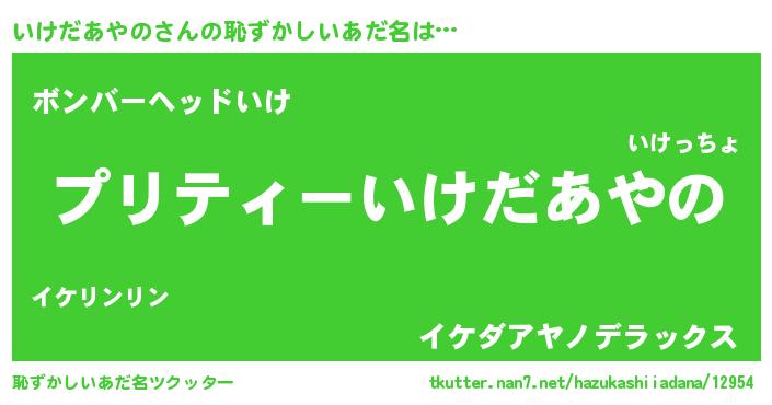 | 肩書あだ名 | 『いけだあやの艦長』『いけだあやの店長』 |