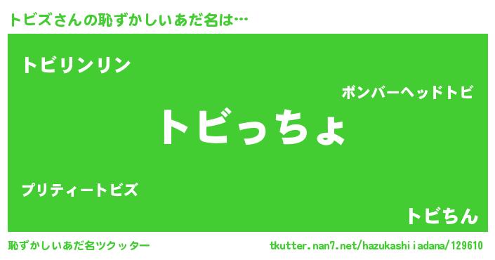 | 欧米人風あだ名 | 『トビズクリステル』『ウサイントビズ』 |
