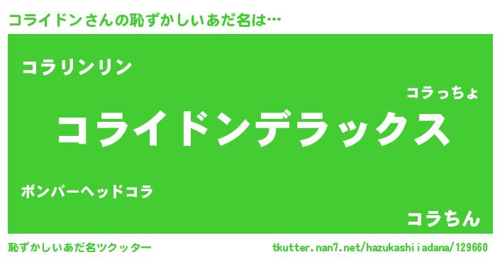 | 意味不明あだ名 | 『自称コライドン』『永久保存コライドン』 |