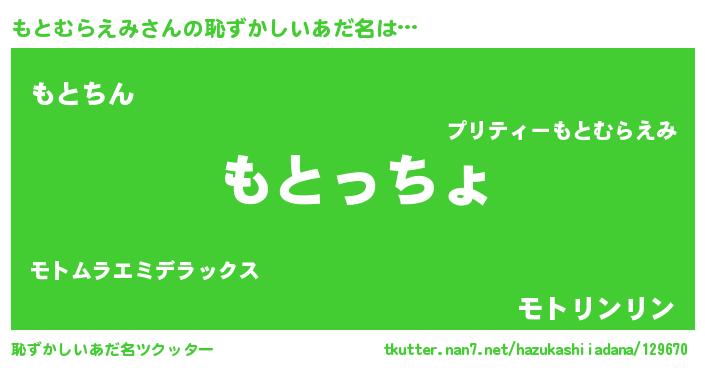 | 意味不明あだ名 | 『もとむらえみフォーエバー』 |